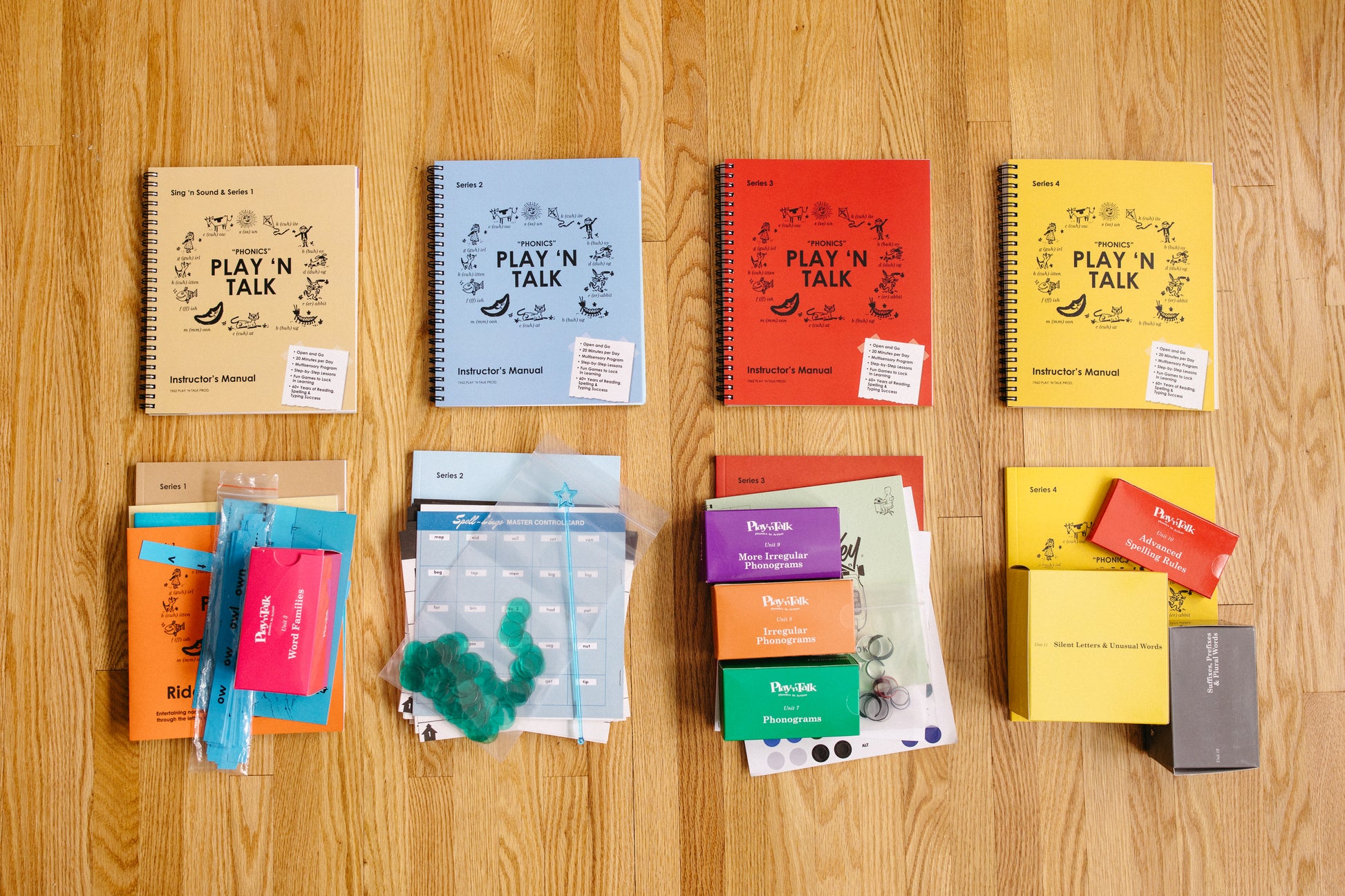 The Deluxe Play 'n Talk Set includes all of the levels, instructor's manuals, student books, games, flashcards and over 210 audio lessons accessible through our easy to use app. Nothing else to buy! The app is our modern day record player, because in 60+ years we have been on Records, Tape Cassettes, CD's and now we have an app! The deluxe program is non-consumable, meaning you can use our program with multiple students. Our program begins with letters and sounds and ends with 11th/12th grade level of spelling and college level of reading. All it takes is 20 minutes per day over the course of two years.